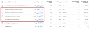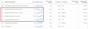 - Use the refined results filtered by location, region, language, or the frequency of the keyword searched.